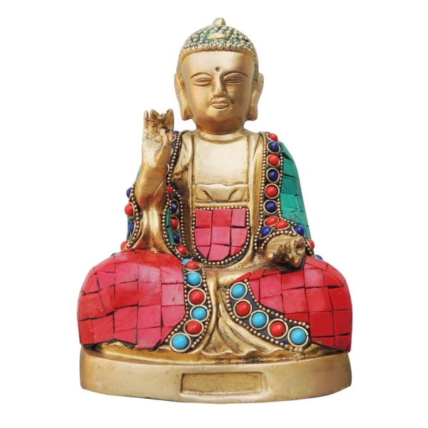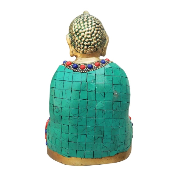 Brass Buddha Statue with Turquoise Coral Stone Finish