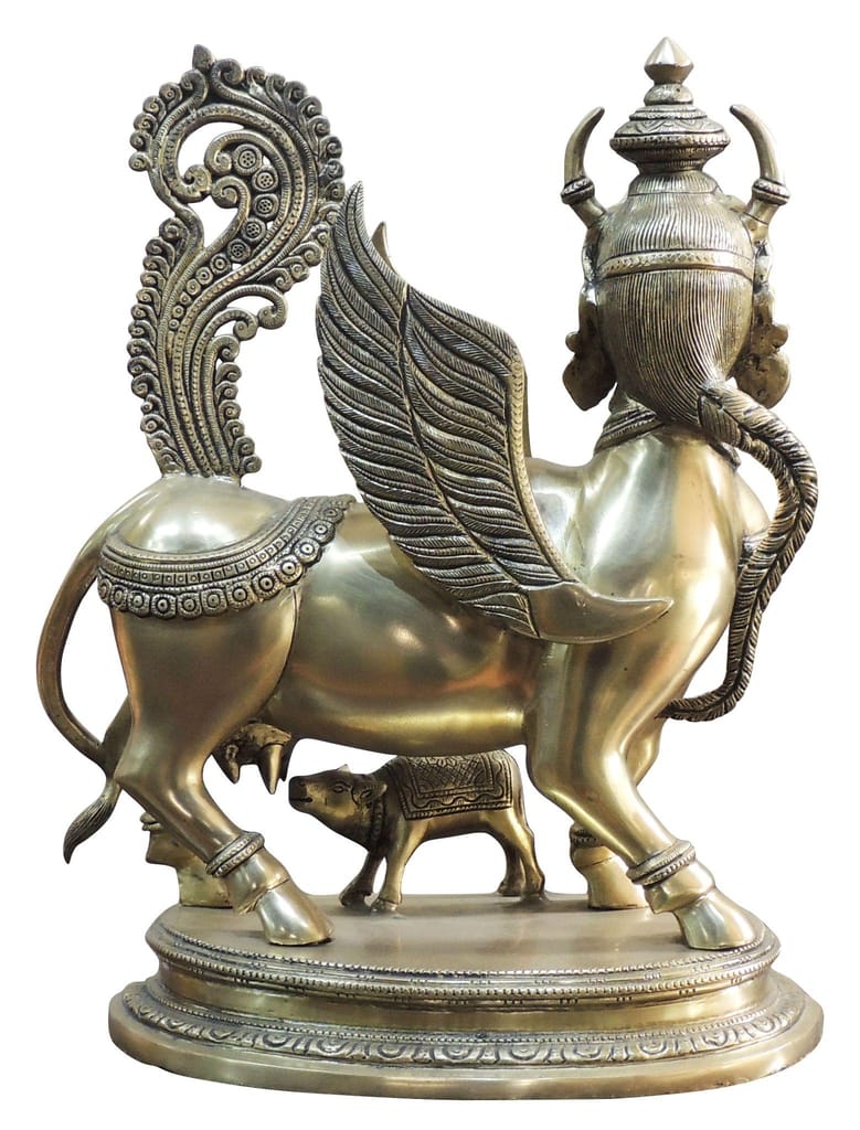 Whether you are a collector of religious artifacts or simply looking to add a meaningful piece to your home, this statue is an excellent choice. Experience the beauty and blessings that the Brass Kamdhenu Cow Statue with Calf can bring into your life.