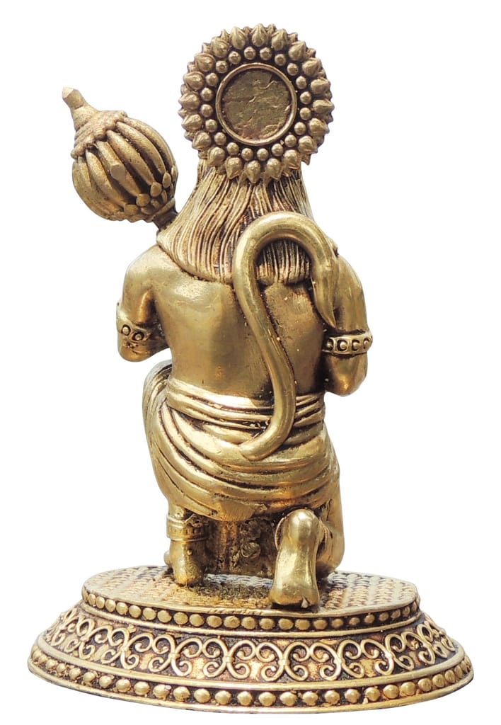 This idol is made from high-quality brass, a material known for its durability and aesthetic appeal. Brass has been used for centuries in various cultures for creating religious artifacts due to its ability to withstand the test of time. The intricate details and craftsmanship of this statue reflect the skill and dedication of the artisans who created it. Each curve and contour is meticulously designed, showcasing the divine form of Hanuman Ji.