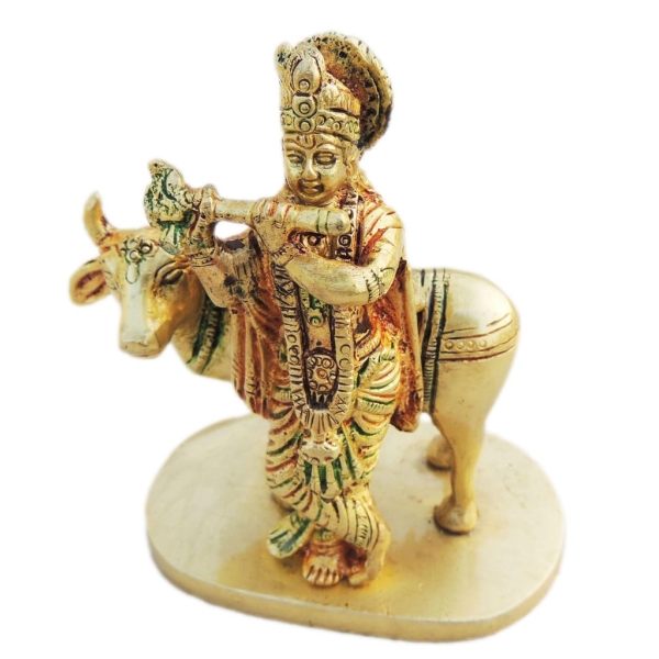 This 4-inch Cow Krishna statue is versatile enough to fit into various settings. Whether you place it on a shelf, a table, or an altar, it will undoubtedly draw attention and admiration. Furthermore, it can be a wonderful gift for special occasions such as housewarmings, weddings, or religious ceremonies. Its compact size makes it easy to incorporate into any space without overwhelming the existing decor.