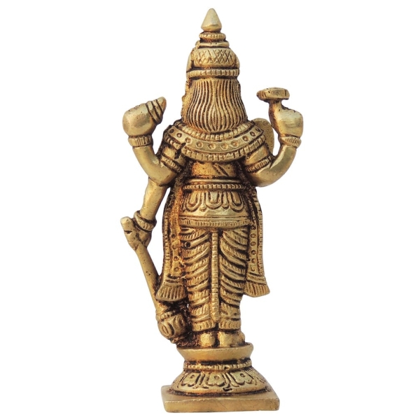 This idol is made from high-quality brass, a material known for its durability and aesthetic appeal. Brass not only enhances the visual charm of the statue but also ensures that it can withstand the test of time. The intricate detailing and craftsmanship reflect the rich cultural heritage associated with Hindu art. Each curve and contour of the idol has been meticulously designed to bring out the divine essence of Lord Vishnu.