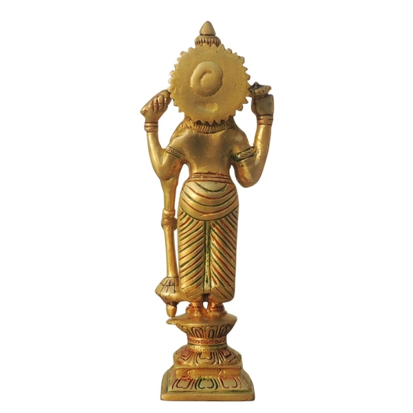 This idol is meticulously crafted from high-quality brass, a material known for its durability and timeless appeal. Brass has been used for centuries in religious artifacts due to its ability to withstand the test of time while maintaining its luster. The intricate details of the statue showcase the skill of the artisans who have poured their heart and soul into creating this divine representation of Lord Vishnu.