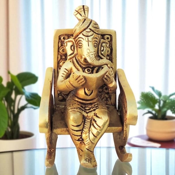 Brass Showpiece Chair Ganesh Ji God Idol Statue 3.5*2.5*4.5 Inch (BS1262 A)