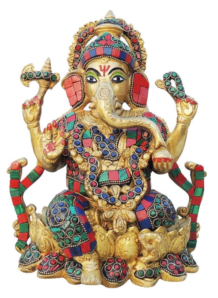Brass Showpiece Ganesh Stone God Idol Statue – 7.5*6.5*9.5 Inch (BS1630 D)