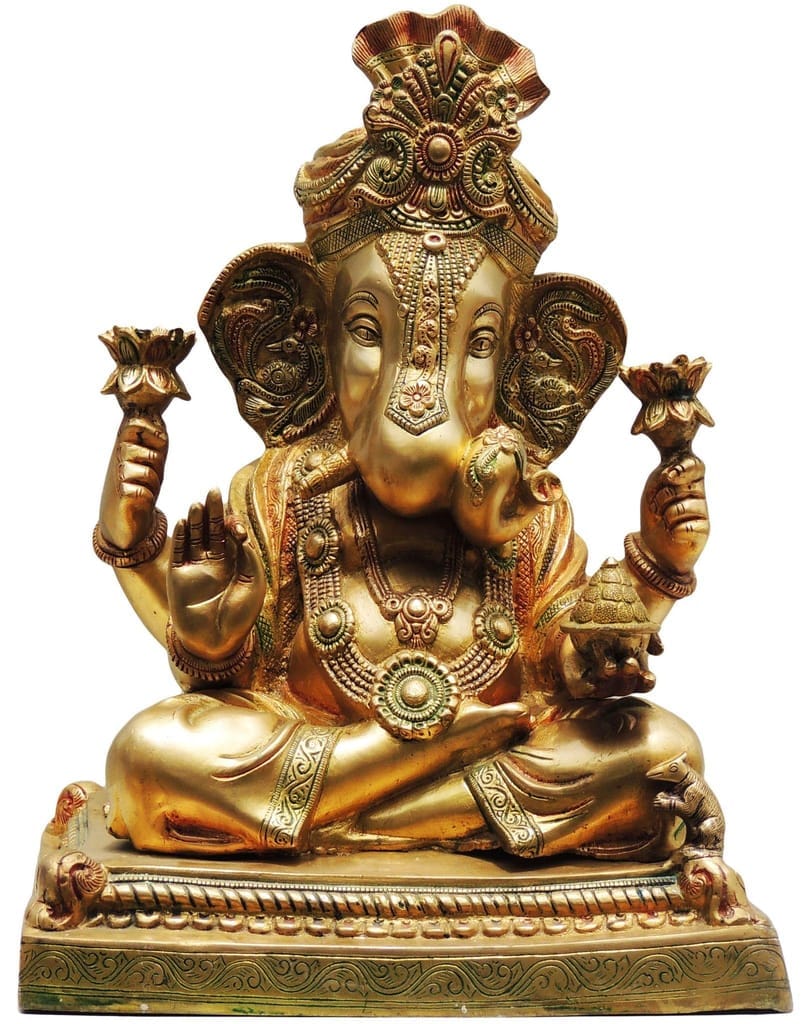 DESCRIPTIONSPECIFICATIONREVIEWSLength : 15 InchWidth : 10 InchHeight : 19 InchWeight : 21.28 KgBase Metal : BrassHindu God Ganesha Statue is the Lord of success and destroyer of evils and obstacles. He is also worshipped as the god of education, knowledge, wisdom and wealth. Ganesh Sculpture can certainly be used for good Fengshui. In fact, Fengshui being the art of creating harmonious, healthy and prosperous environments is open to using any symbols, images and ideas that work for the homeowner.Made ofBrassBrandBrass Gift Center0/5Rate this product!Post ReviewLoad