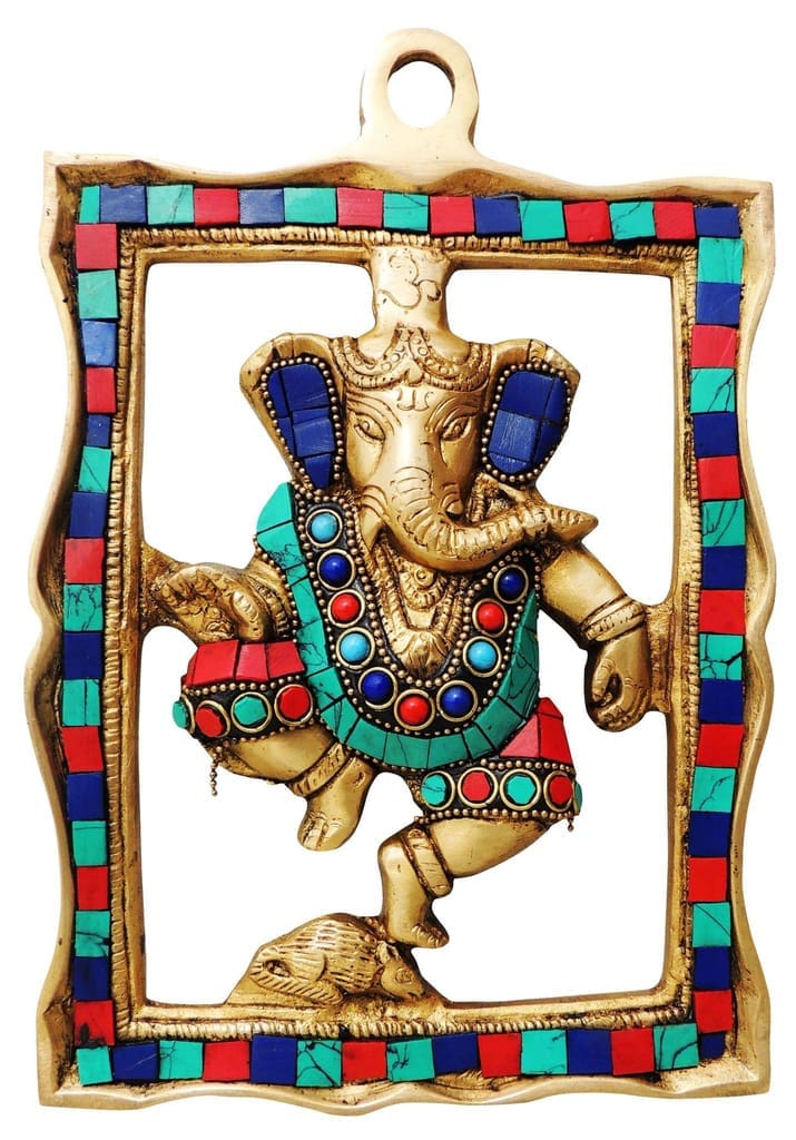 Brass Wall Hanging Showpiece Ganesh Statue With Coral Stone Finish – 6*0.5*9 Inch (BS838 A)